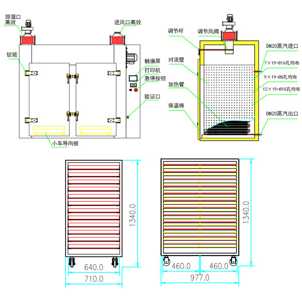 ⒏本厂出厂烘车,烘盘尺寸统一,可以互换;