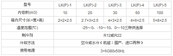 LK(P)系列拼装式冷藏室 系列拼装式冷藏室可应用于制药厂、医院、果品仓库、禽蛋仓库、食品公司作药品、果品、禽蛋及肉、鱼类的冷冻或保鲜之用。 技术参数: